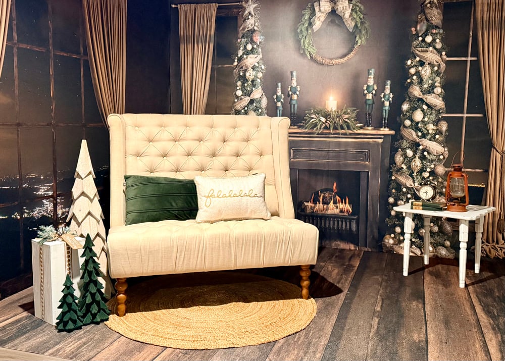 ✨Step into holiday magic with this Luxe Living Room photo set — a cozy, elegant set that feels like home, only more magical. With a glowing fireplace, a starlit night sky beyond the window, and warm amber tones accented with gold, this set is perfect for timeless family portraits. A plush, neutral loveseat and sophisticated holiday decor complete the scene, creating the perfect setting for your holiday best or snuggly sweaters.